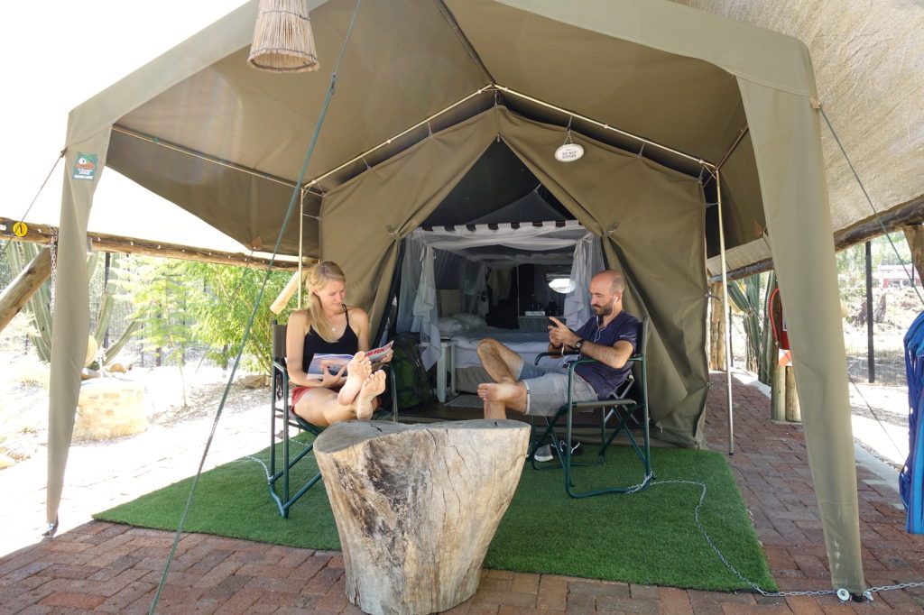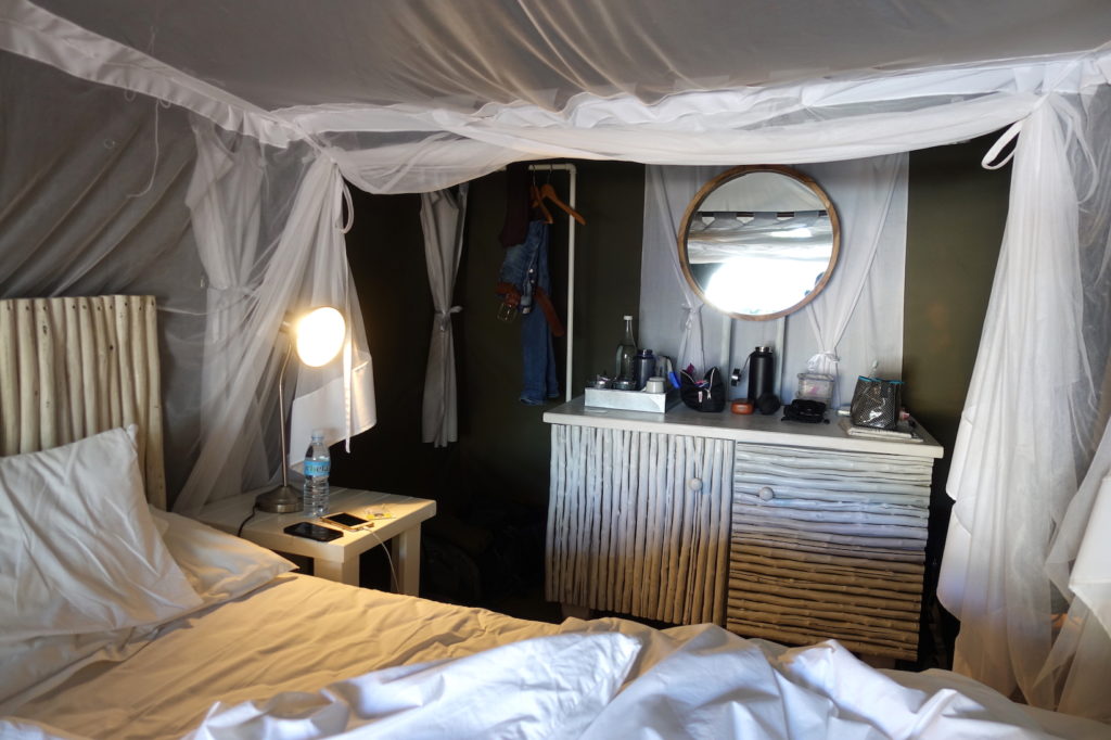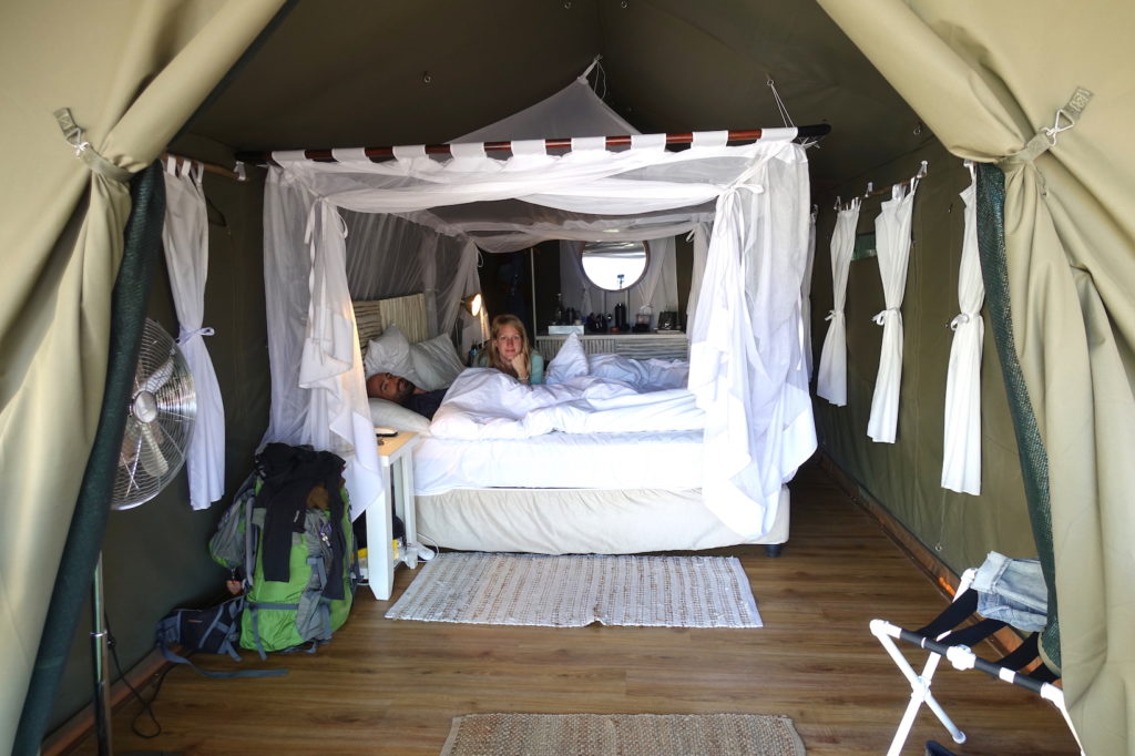 Wir sind in einem komfortablen Glamping-Zelt untergebracht.