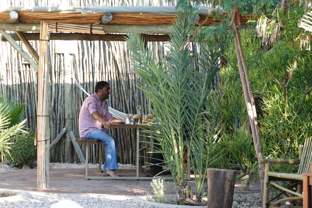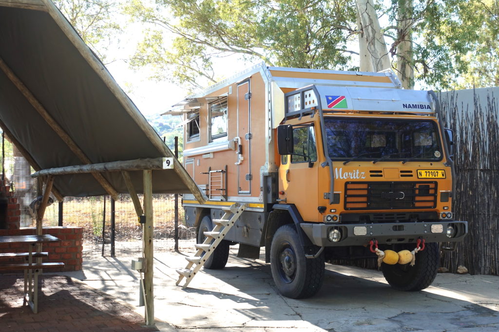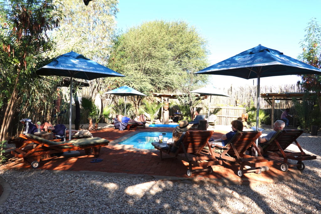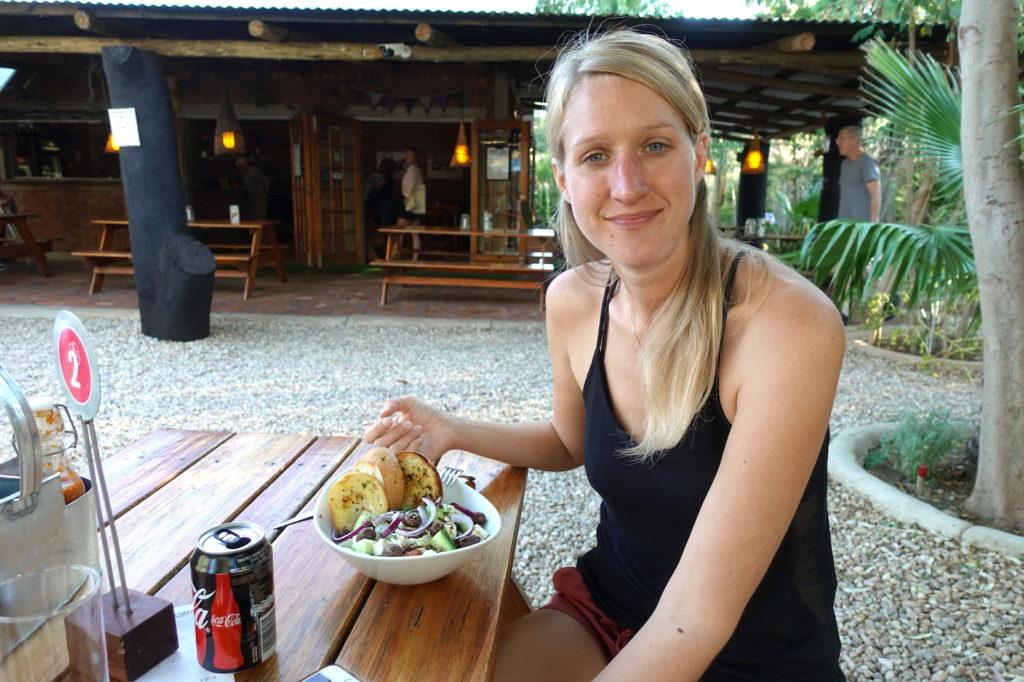 Die haben auch ein gutes Restaurant hier im Camp. Das ist super, denn so sind wir rundum versorgt. Taxis und Fahrdienste sind leider relativ teuer und zu Fuß sollte man sich auch hier in der Stadt nicht überall bewegen. Außerhalb der Städte ist Namibia aber ziemlich sicher – da werden dann eher die Tiere zur Gefahr. 🙂