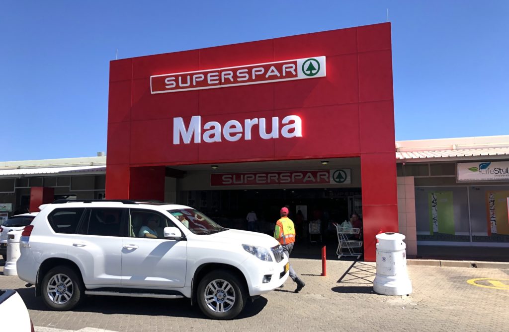 Vor einem Camping-Trip muss natürlich ordentlich eingekauft werden. Spar ist in Namibia sehr verbreitet.