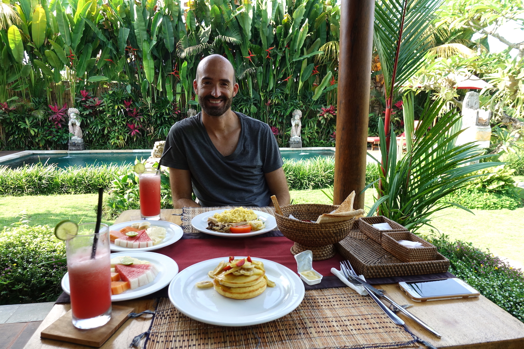 In Ubud bekommt man die Unterkunft meistens mit Frühstück. Das genießen wir natürlich auch sehr.