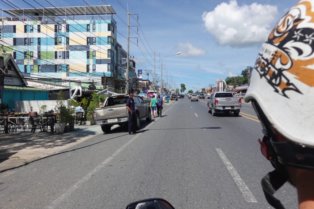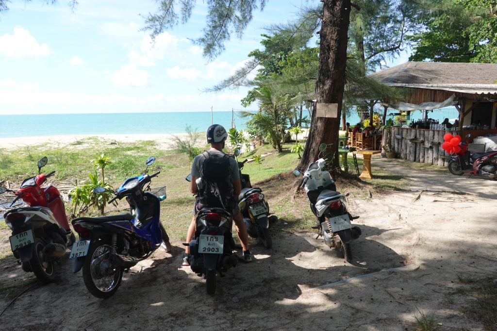 Wir nehmen uns einen Roller. Der Strand direkt bei uns ist vollgepflastert mit Resorts. Deshalb fahren wir etwas nördlicher.
