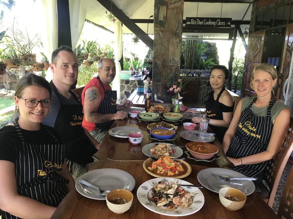 Jeder Teilnehmer durfte sich 2 Gerichte aussuchen und am Ende von allem probieren. Natürlich haben wir alle Rezepte bekommen. Der Pui`s Thai Cooking Course hat viel Spaß gemacht.