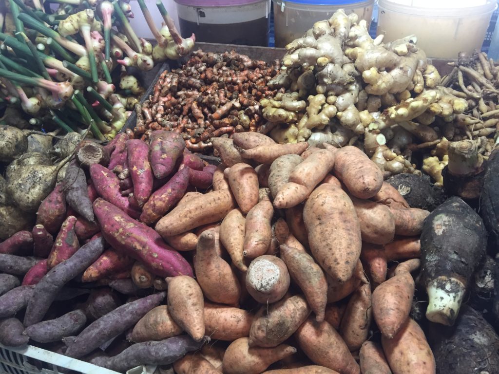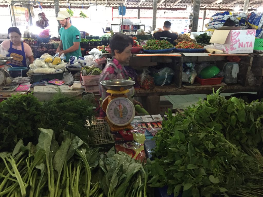 Zuerst steht ein Marktbesuch an. Hier kaufen wir unsere frischen Zutaten und bekommen einige Lebensmittel erklärt.