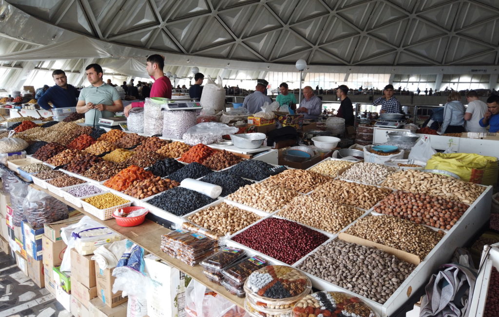 Die U-Bahn hier in Tashkent ist übrigens auch sehenswert. Die Stationen sind nach dem Vorbild der Moskauer Metro reich verziert – jede Station individuell mit Marmor, Säulen, schicken Leuchtern und ähnlichem. Da die Metro zu einem Atomschutzbunker umfunktionierbar ist, gilt sie als militärisch wichtig und man darf deshalb keine Aufnahmen machen.
