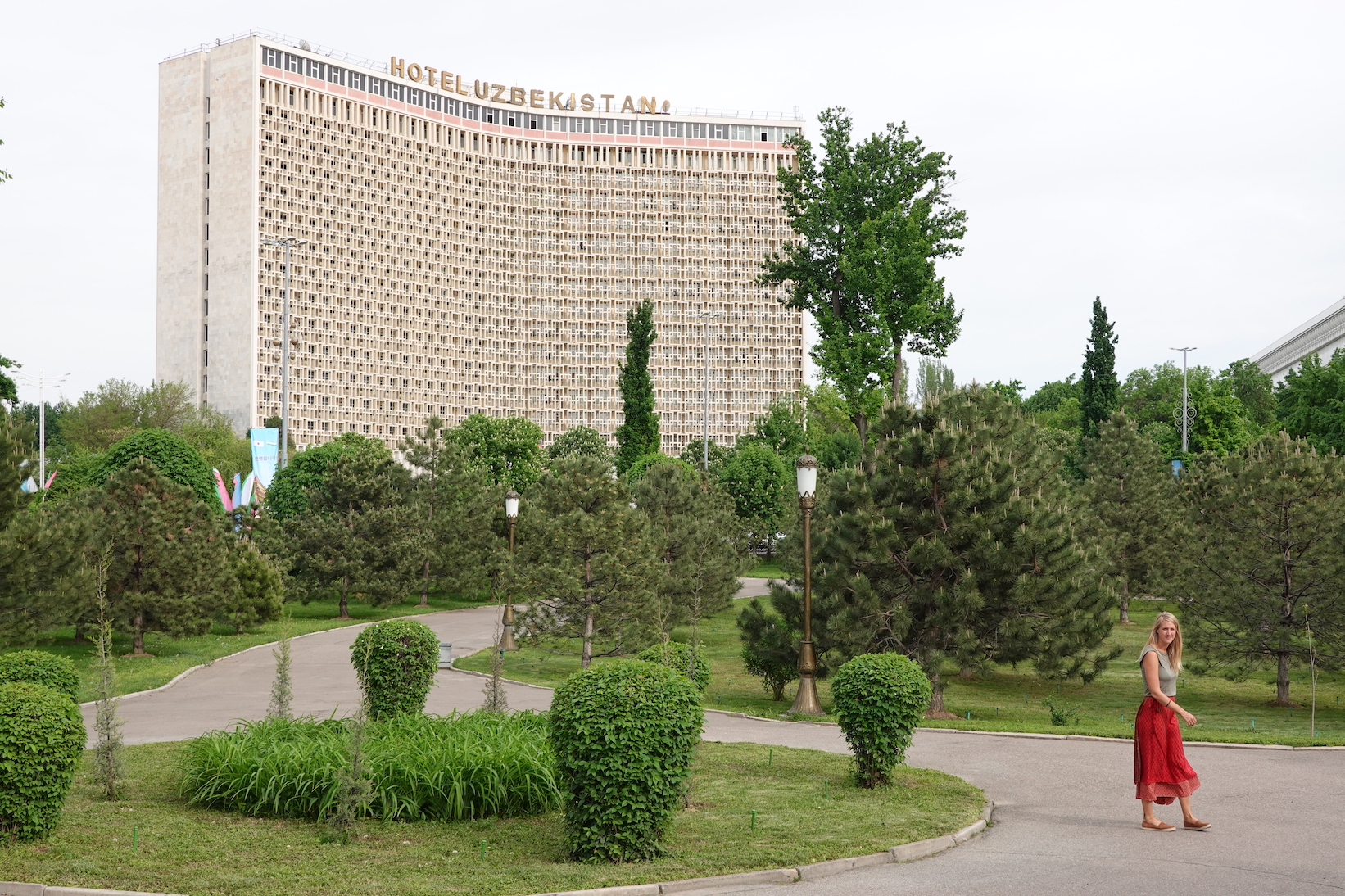 Das Hotel Usbekistan ist auch fast eine Sehenswürdigkeit. Das Gebäude ist aus sowjetischer Zeit wie man am Baustil erkennen kann.