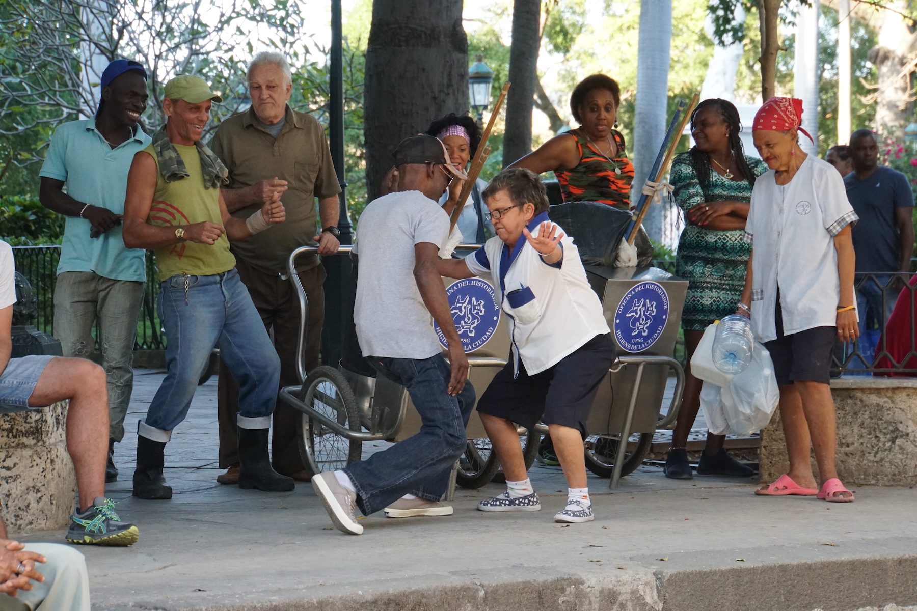 Und Spaß haben auch die Kubaner. Sie erfreuen sich auf der Straße vor dem Lokal an der Musik und gehen beim Tanzen voll ab. 🙂