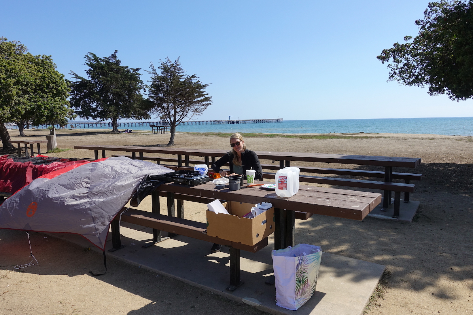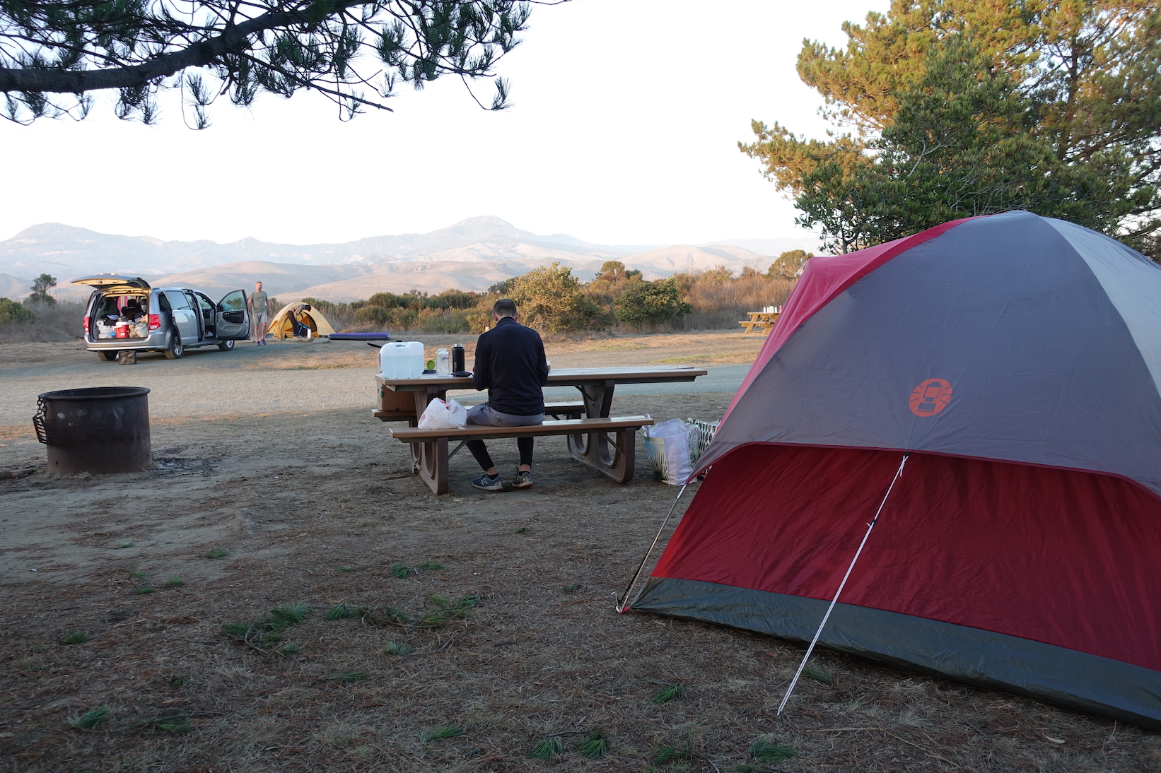 Auf halber Strecke nach Los Angeles schlagen wir wieder unser Zelt auf. Auf den ganzen Parkplätzen und Buchten unterwegs sind immer Schilder mit Parkverbot für die Nacht. Es gibt aber immer ausreichend Camps auf der Strecke. Im Sommer allerdings dürfte es schwierig werden, spontan freie Camps zu bekommen.